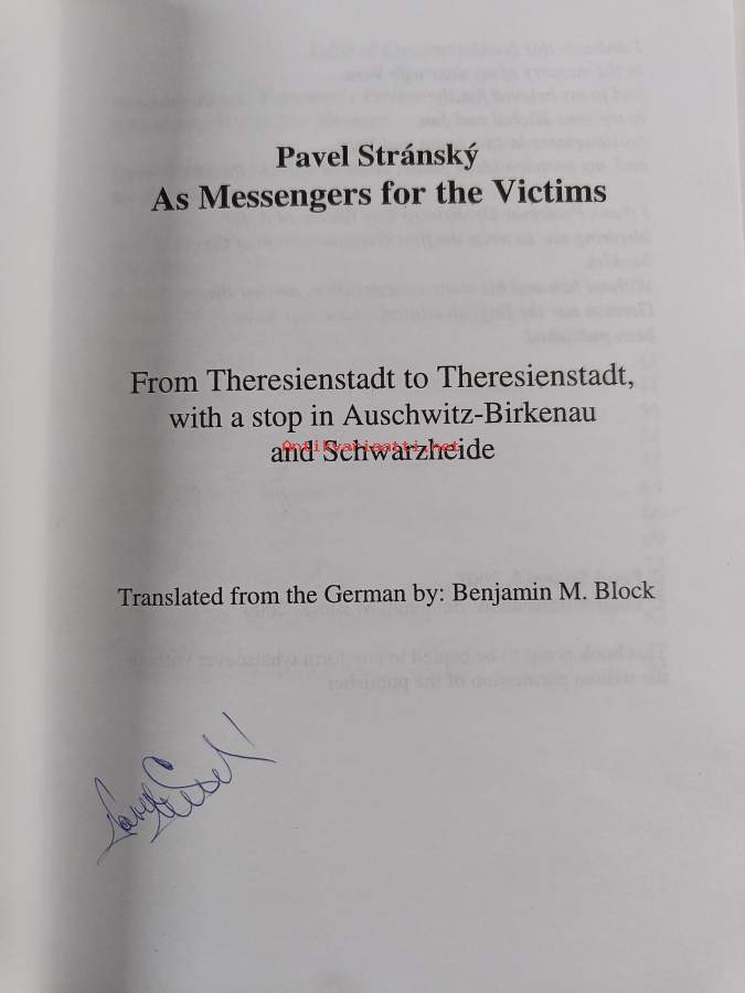 As messengers for the victims : from Theresienstadt to Theresienstadt, with a stop in Auschwitz-Birkenau and Schwarzheide (signeerattu)