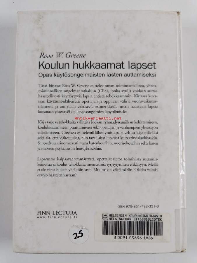 Muu(t) tekijä(t): Mirja MuurinenAlkuteos: Lost at school : why our kids with behavioral challenges are falling through the cracks and how we can help themAsiasanat: käyttäytymishäiriöt, vuorovaikutus, ongelmat, koulut, poikkeava käyttäytyminen, erityiskasvatus, opettaja-oppilassuhde, kouluyhteisö, lapset (ikäryhmät)