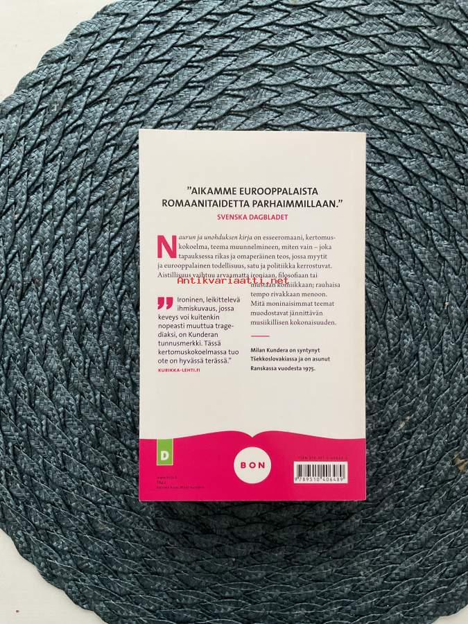 Naurun ja unohduksen kirja, 1983. Kirja on esseeromaani, kertomuskokoelma, teema muunnelmineen, miten vain - rikas ja omaperäinen teos.