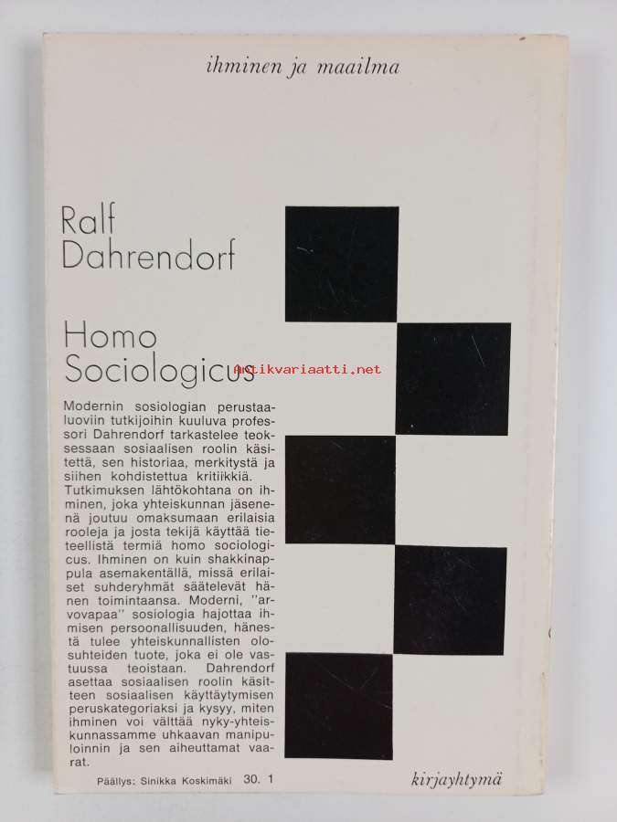 Muu(t) tekijä(t): Anne-Eva TiililäMerkinnät: omistajamerkintäSarja: Ihminen ja maailmaAlkuteos: Homo sociologicusAsiasanat: yhteiskunta, sosiologia, yksilö