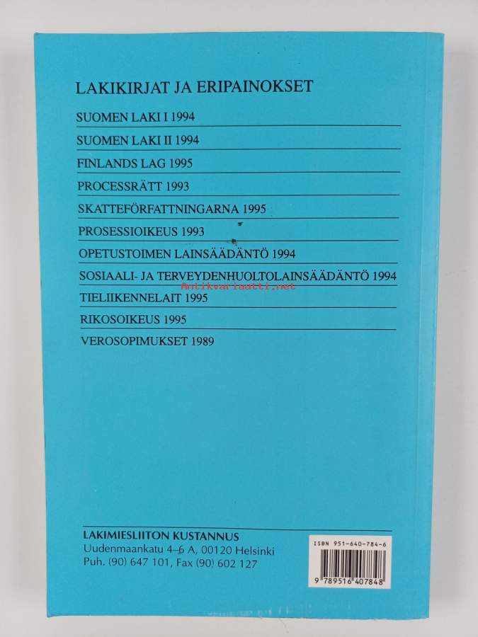 Muu(t) tekijä(t): Hannu RantaAsiasanat: lainsäädäntö, ympäristönsuojelu, luonnonsuojelu, ympäristöhallinto, ympäristö, vesioikeus, ympäristöoikeus, lait, maankäyttö, kiinteistönmuodostamisoikeus, miljö, miljöskydd, lagstiftning, lagar, naturskydd, markanvändning, miljörätt, fastighetsbildningsrätt, miljöförvaltning, vattenrätt
