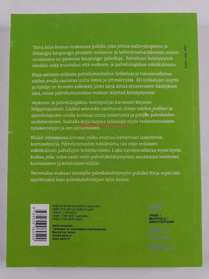 Muu(t) tekijä(t): Tuuli Mattelmäki, Annukka JyrämäSarja: Aalto-yliopiston julkaisusarja. Taide + muotoilu + arkkitehtuuri 1/2015Asiasanat: muotoilu, asiakaslähtöisyys, palvelut, kaupungit, kehittäminen, verkostot, yhteistyö, suunnittelu, yliopistot, innovaatiot, julkiset palvelut, verkostoituminen, käyttäjälähtöisyys, kuntasuunnittelu, tutkimus- ja kehittämistoiminta, palvelumuotoilu, verkostojohtaminen, yhteissuunnittelu