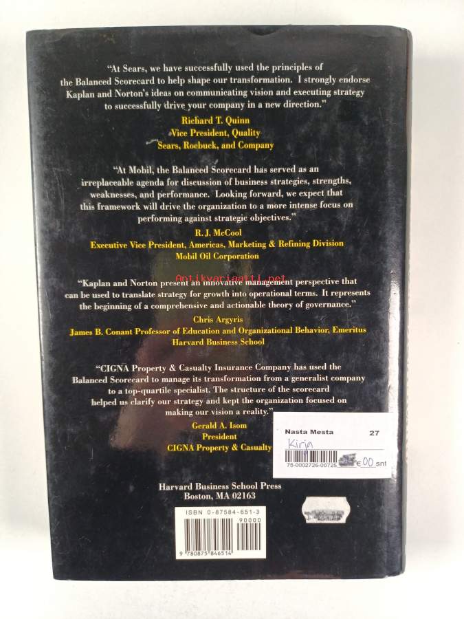 Muu(t) tekijä(t): D. P. NortonMerkinnät: omistajamerkintäAsiasanat: yritykset, yritysjohtajat, taloushallinto, strategiat, toiminnanohjaus (organisaatiot)