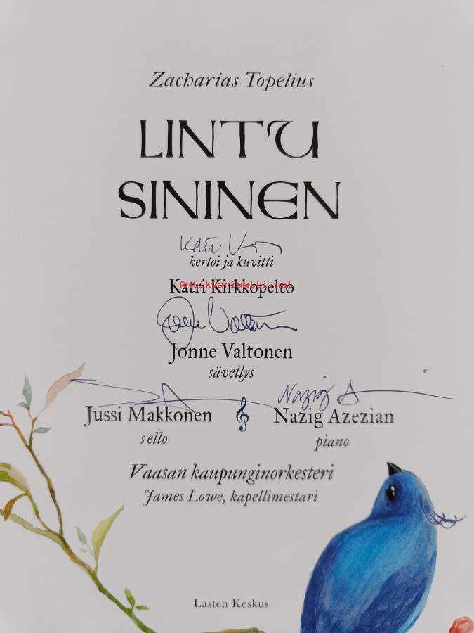 Hyvä. Tarkempi kuntoluokka: K3+ ; Hieman kulumaa kansissa. sisältää tekijän,säveltäjän,sellon ja pianon signeeraukset,sisältää CD-levyn,hyvässä kunnossa,toimivuutta ei testattu
