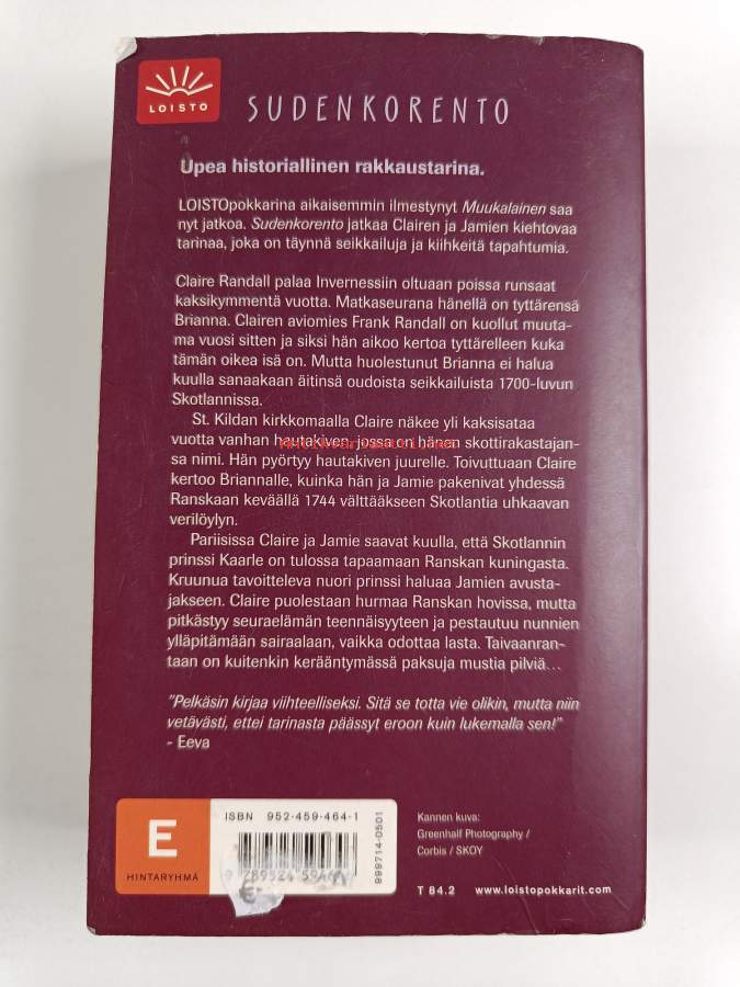 Hyvä. Tarkempi kuntoluokka: K3- ; Hieman käytön jälkeä kansissa, takana hintalapun jäämää, selkämyksessä hieman vinoutta, selkämyksessä lukutaittumaa