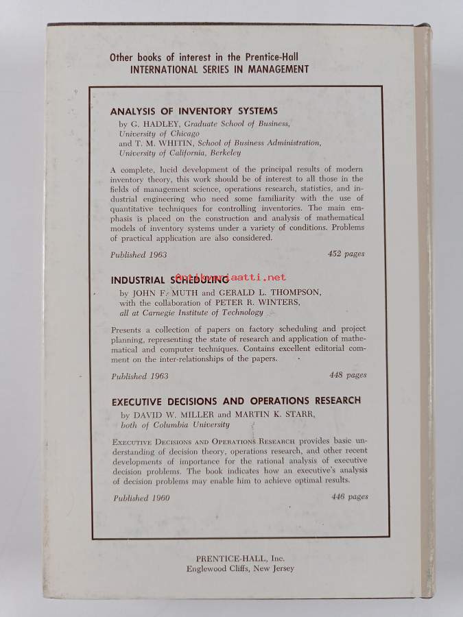 Sarja: Prentice-Hall international series in managementAlkuteos: Méthodes et modelés de la recherche opérationelleAsiasanat: operaatioanalyysi