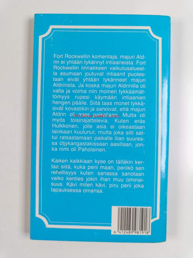 Hyvä. Hieman tahraisuutta, hieman kulumaa kansissa, edessä vanha hintalappu, selkämyksessä hieman vinoutta