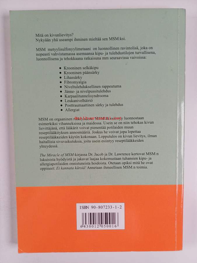 Muu(t) tekijä(t): Martin Zucker, Ronald M Lawrence ym.Alkuteos: The miracle of MSM : the natural solution for pain