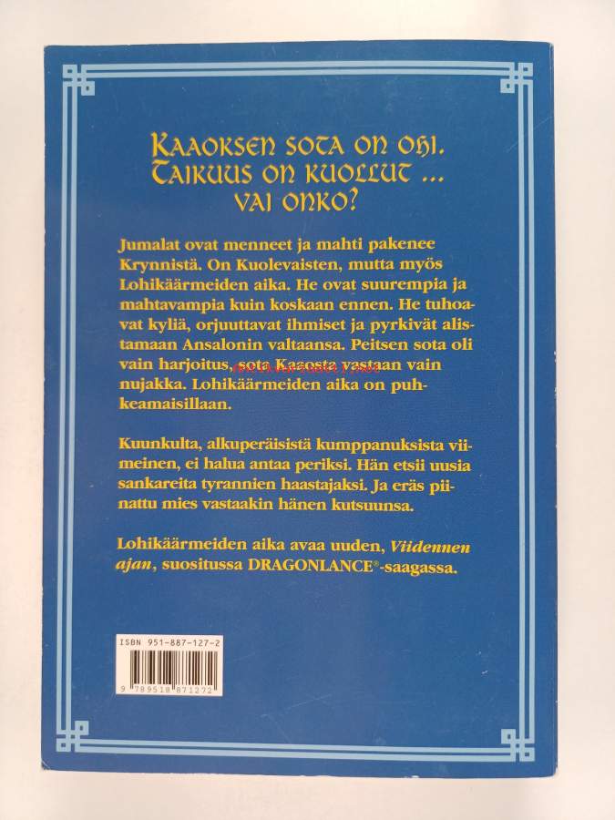 Muu(t) tekijä(t): Mika RenvallSarja: Viides aika; DragonlanceAlkuteos: The dawning of a New AgeAsiasanat: taistelut, laivat, fantasiakirjallisuus, magia, velhot, taikaesineet, ritarit, loitsut, jumalattaret, lohikäärmeet, haltiat, kosto, hyvän ja pahan välinen taistelu, sarjakertomukset, yliluonnolliset voimat, kääpiöt, syvyys, tornit, lumotut olennot, kaksintaistelut, miekka ja magia-kirjallisuus, kuolevaiset, alasin, peitsen sotaritarit, yliluonnolliset oliot