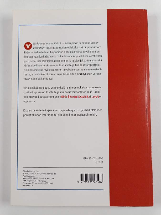 Merkinnät: omistajamerkintäSarja: Yrityksen taloushallinto 1; PrimaAsiasanat: yritykset, tilinpäätös, verotus, kirjanpito, laskentatoimi, yritysverotus, asiakirjat, arvonlisävero, taloushallinto, palkanlaskenta, jaksotus