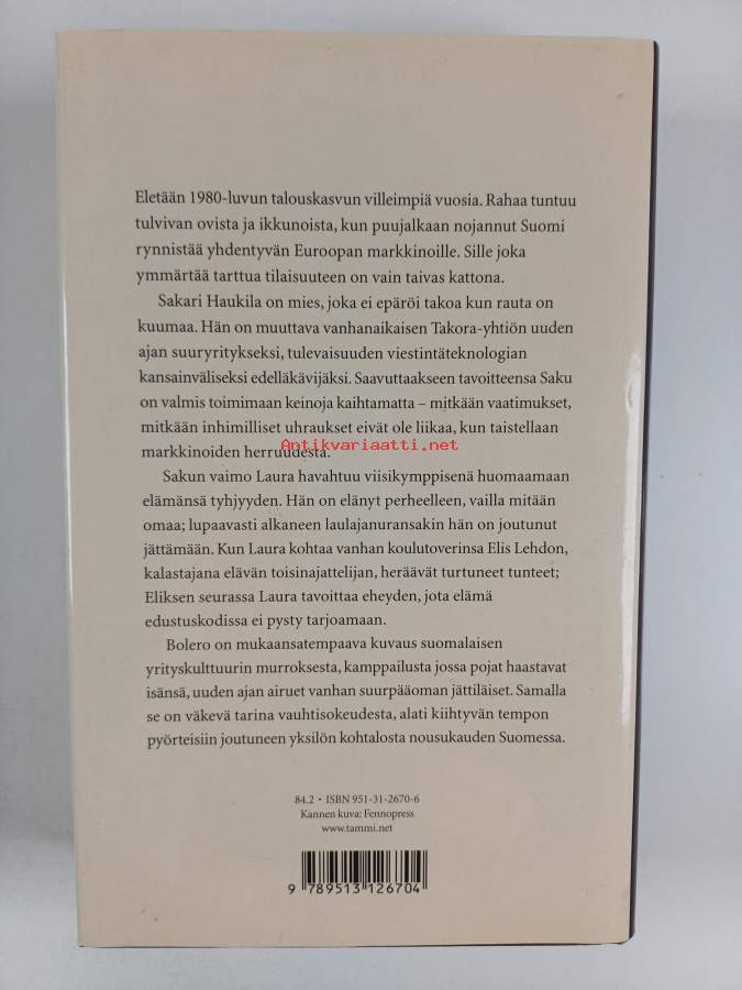 Hyvä. Tarkempi kuntoluokka: K3+ ; Selkämyksessä hieman vinoutta, tyhjä etulehti irrotettu. Kansipaperin kunto: pienoista käytön jälkeä