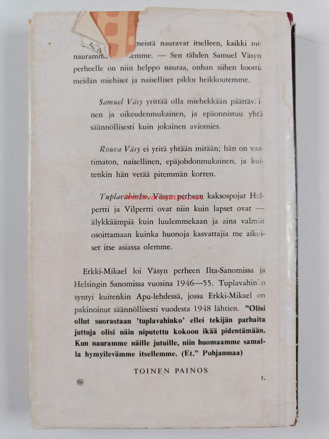 Hyvä. Tarkempi kuntoluokka: K3- ; Pienoista tahraisuutta, hieman kulumaa, selkämyksessä hieman vinoutta. Kansipaperin kunto: joitain repeämiä/kulumaa & tahraisuutta