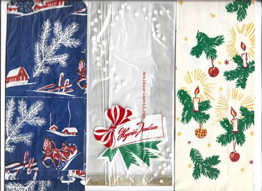 3 kpl erä vanhoja joulupusseja - joulupussi , kauppapussi, tuotepakkaus