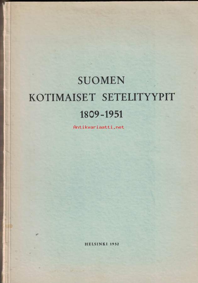 Suomen Pankin setelien valmistus - Kotimaiset setelityypit vuosina 1809-1951 - Taulukkoja setelien numeroimisesta - Setelien kuvat.-Suuri Helposti kuori