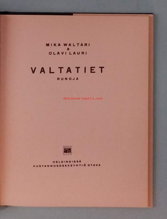 Valtatiet on Mika Waltarin ja Olavi Paavolaisen (salanimellä Olavi Lauri) yhdessä kirjoittama runokokoelma:18 Waltarin kirjoittamaa ja 12 Paavolaisen kirjoittamaa. Runot heijastelevat usein aikakauden teemoja, kuten koneiden, junien, satamien ja kaupunkielämän kuvausta, modernismin hengessä. Dimensiot 19 ¤ 15 cm.