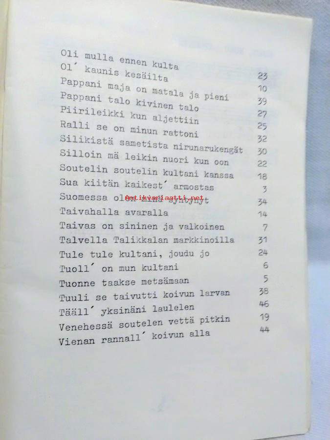 Karjalaisia kansanlauluja Kiihtelysvaarasta : Kyllikki Maliston kokoelma (signeerattu)