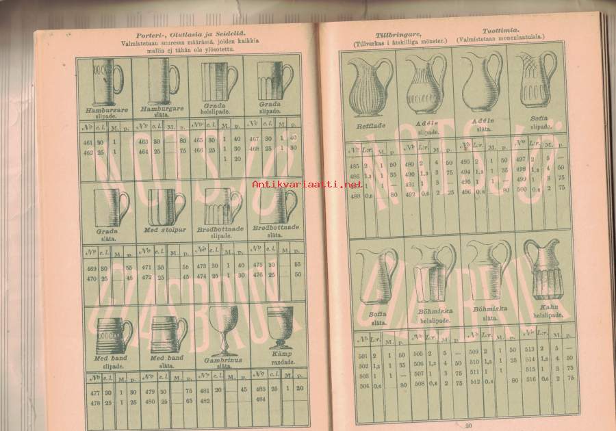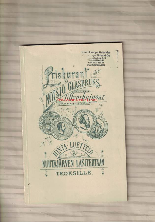 Hinta-luettelo Nuutajärven lasitehtaan teoksille. Priskurant öfver Notsjö glasbruks tillverkninqar