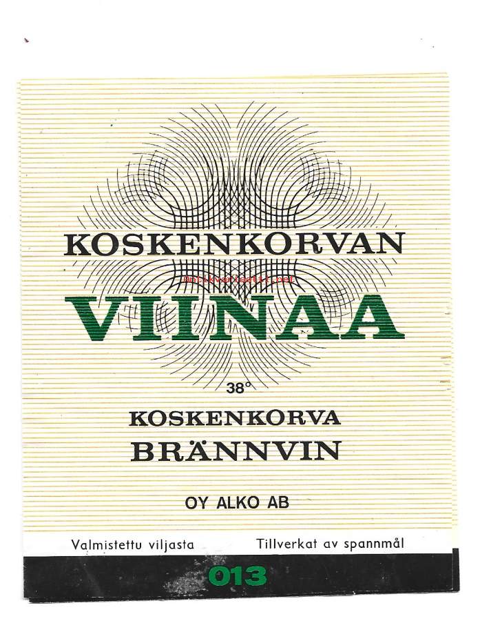 Alkoholiliike Oy 1932Alko Oy 1969Primalco 1995Altia Oyj 1999Koskenkorva eli Koskenkorva Viina, puhekielessä Kossu, on suomalainen Anora Group Oyj:n valmistama ja omistama alkoholijuomamerkki.HistoriaKoskenkorva tuli markkinoille vuonna 1953.. Usean vuosikymmenen ajan juomaa sai vain 0,5 litran lasipullossa. Sitä ei myöskään viety ulkomaille. 1990-luvulla Koskenkorvaa alkoi saada muissa pakkausko’oissa ja muunnelmina.Koskenkorvan nimi tulee Koskenkorvan tehtaista, jotka on perustettu samannimiseen kylään Ala-Koskenkorvan tilan maille.Pullon etiketissä luki alun perin ”Koskenkorvan viinaa”, sittemmin ”Koskenkorvan viina” ja nykyään ”Koskenkorva Viina”. Koskenkorvan perinteinen etiketti esittää Pohjanmaan latomaisemaa. Sen suunnitteli Lasse Linnanmäki. Välillä oli käytössä myös Tapio Wirkkalan suunnittelema abstrakti kuva-aihe.Koskenkorvaa saa kirkkaan 38-prosenttisen ohraviinan lisäksi 30-prosenttisena. Koskenkorva Vodka -juomat ovat vahvempia (40 %, 60 %, 80 %) vodkia tai miedompia juomasekoituksia. Niissä ei ole perinteistä peltomaisemaetikettiä, ja ne on suunnattu ensisijaisesti ulkomaanmyyntiin.