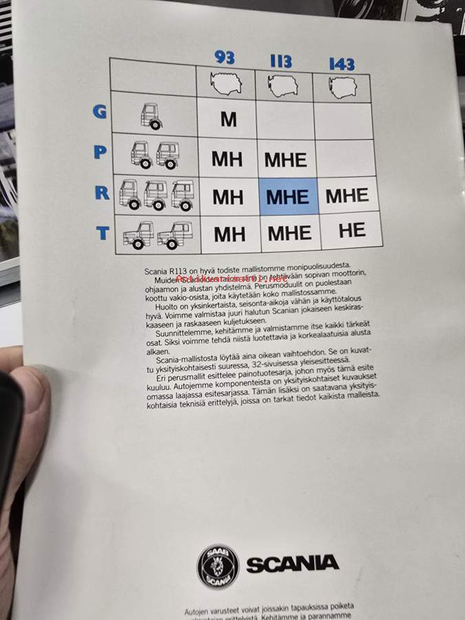 Scania P93 paloauto -myyntiesite (1988) / sales brochure