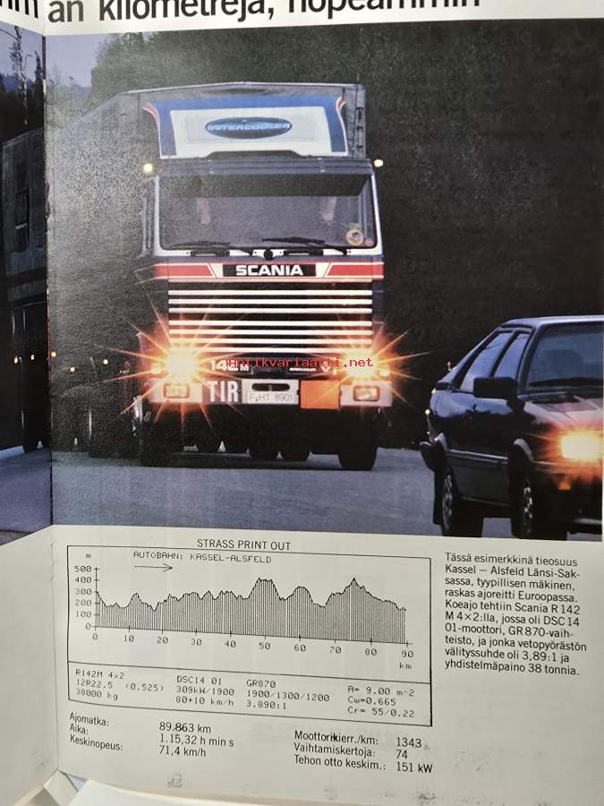Scania P93 paloauto -myyntiesite (1988) / sales brochure