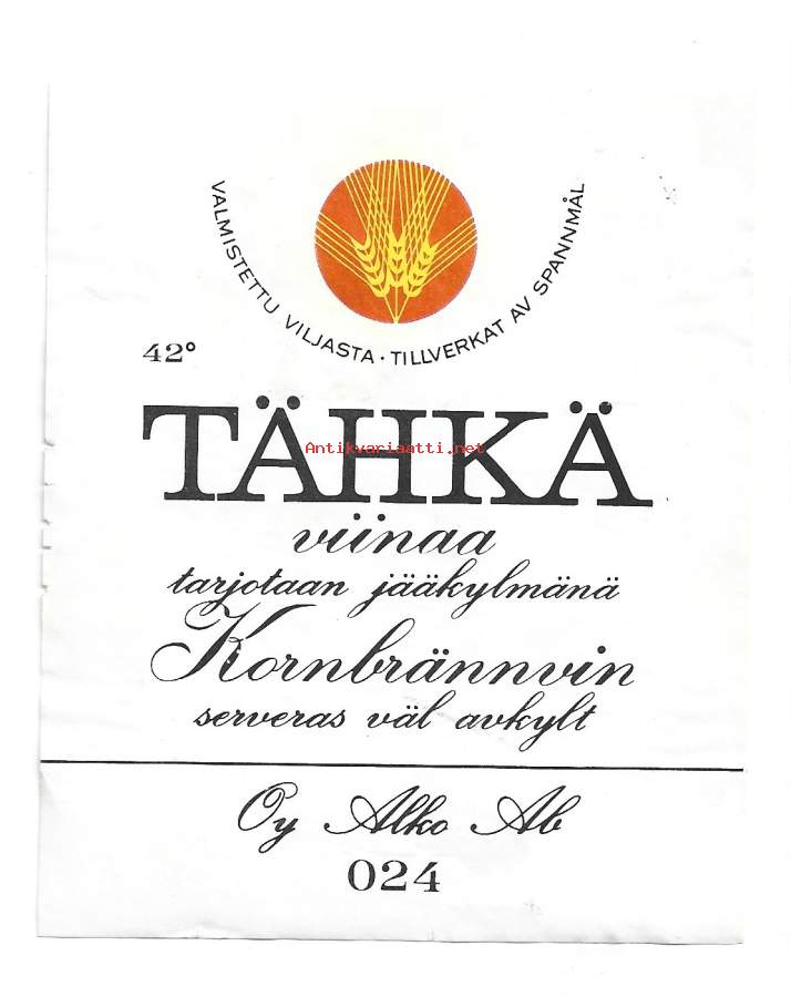 Tähkä nr 024 - viinaetiketti