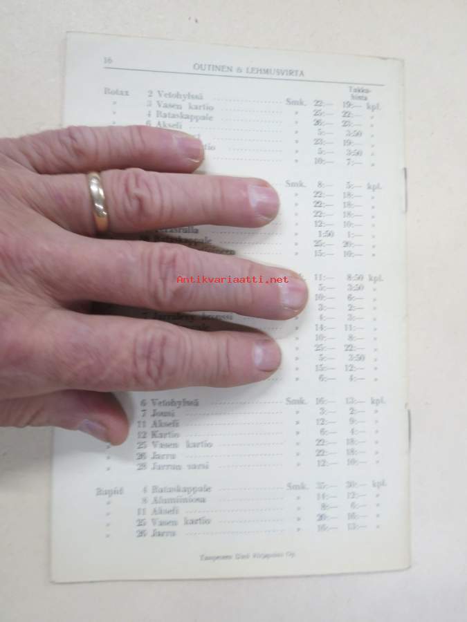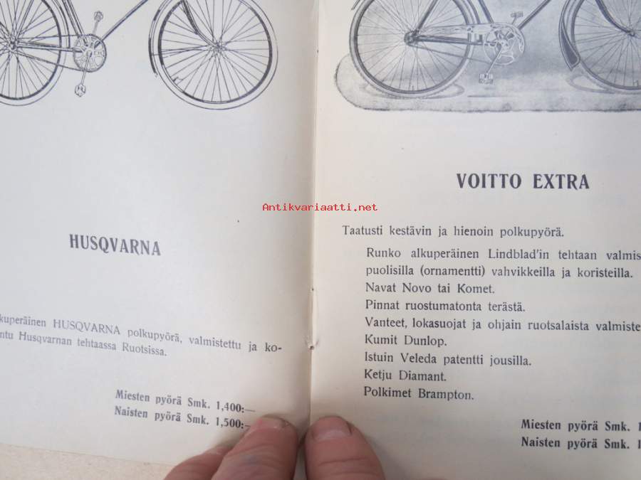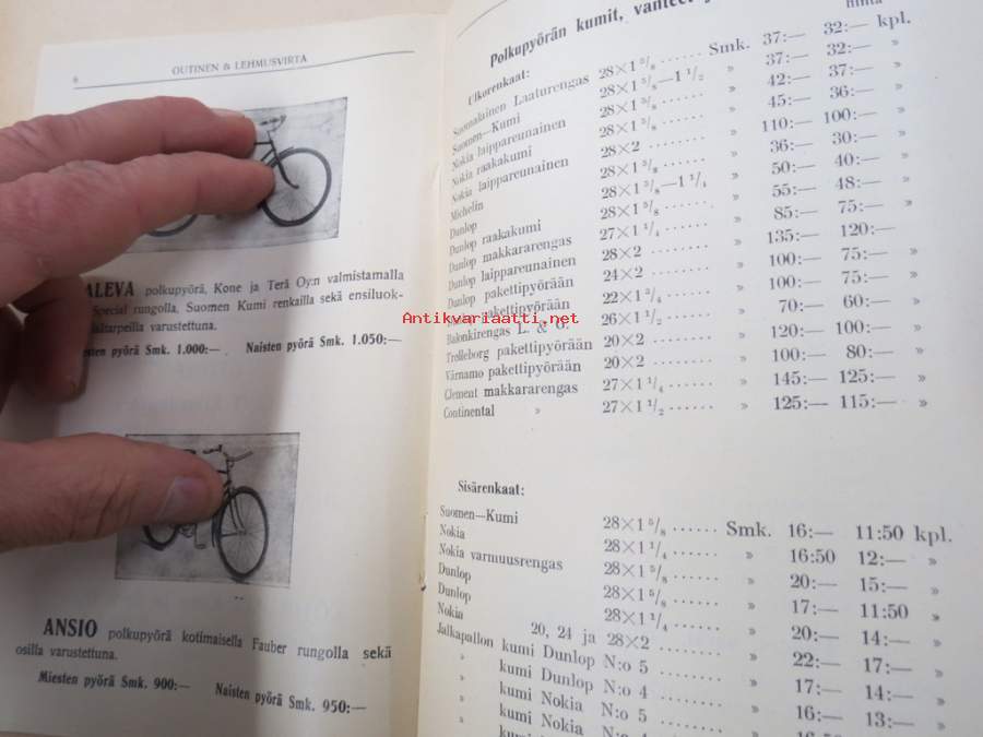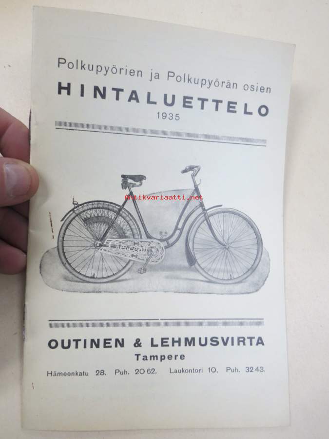 Polkupyörien ja Polkupyörän osien Hintaluettelo 1935 - Outinen & Lehmusvirta Tampere -tuoteluettelo / hinnasto