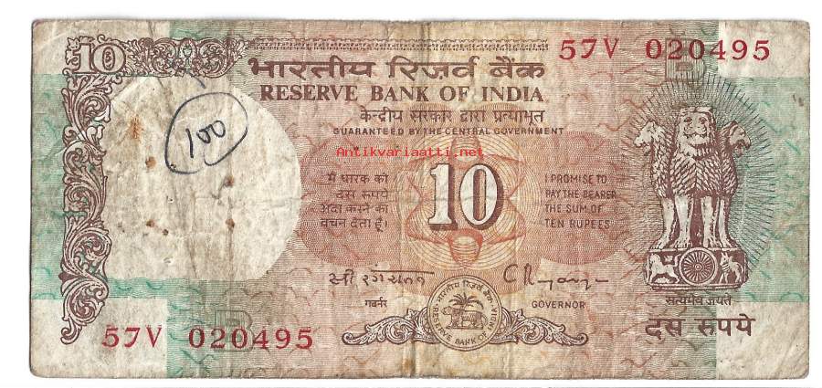 Intia 10 Rupees seteli / Rebublic of India Reserve Bank 2. serie