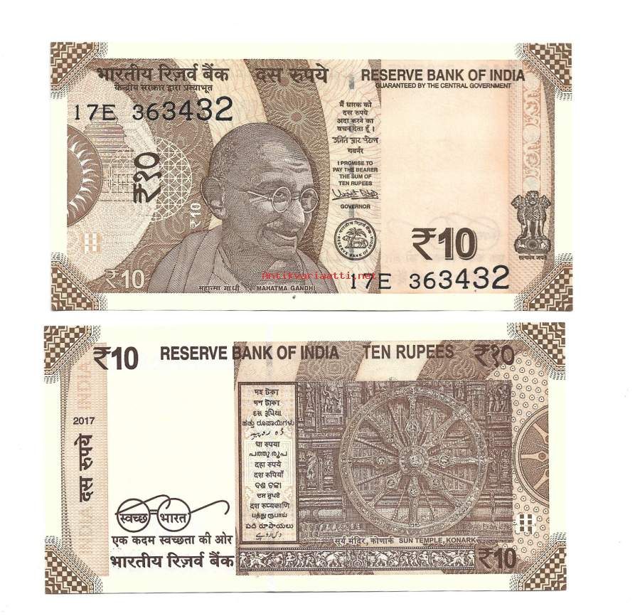 Intia 10 Rupiaa 2017 seteli