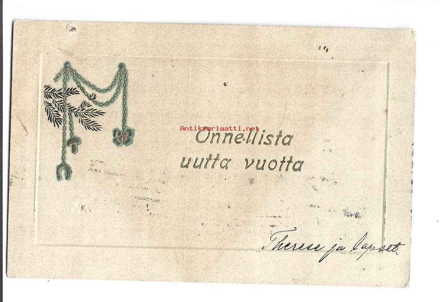 Onnellista Uutta Vuotta - kohopainokortti uudenvuodenkortti kulkenut 1910