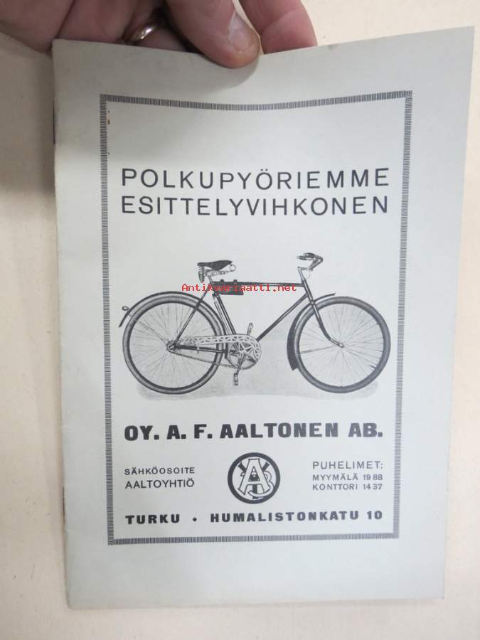 Polkupyörähinnasto 193?, Oy A.F. Aaltonen Ab, Turku -tuoteluettelo / hinnasto