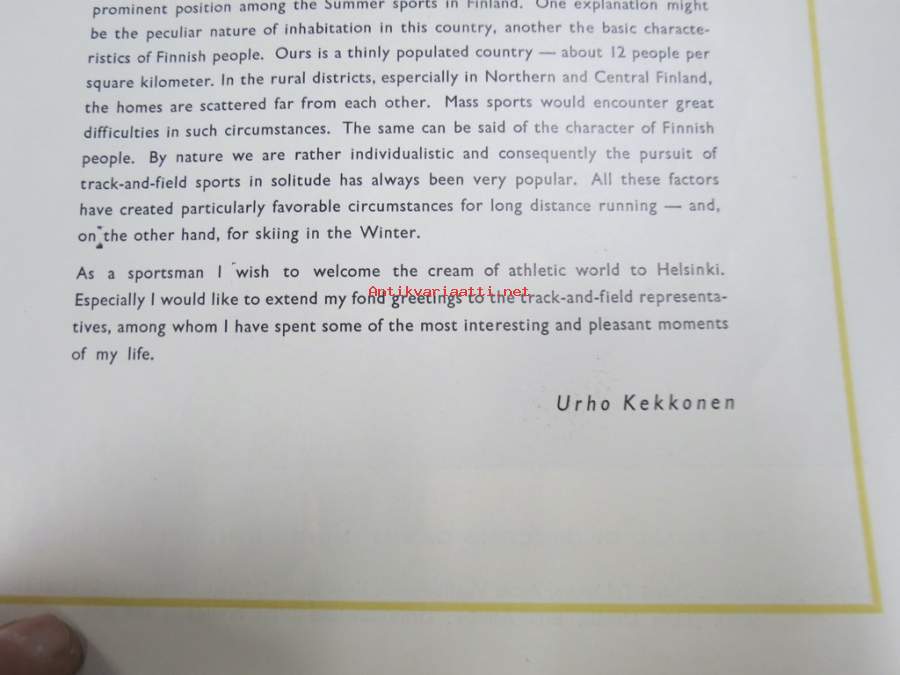 Track and Field in Finland - The Finnish Athletic Association -Suomen Urheiluliiton esittelykirja v. 1952, hallintoa, historiaa, saavutuksia ja nykyhetkeä
