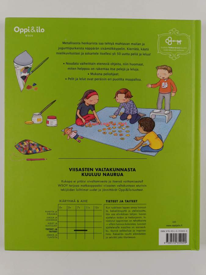 Muu(t) tekijä(t): Annukka Kolehmainen, Francesc Martı́n ym.Sarja: Oppi & ilo : tieteet ja taiteetAlkuteos: Easy-to-build world toysAsiasanat: valmistus, askartelu, lastenkirjallisuus, kierrätys, leikit, pelit, kierrätysmateriaalit, leikkikalut, suomenkielinen kirjallisuus, pelaaminen, kansainvälisyys, katselukirjat, barnlitteratur, pyssel, finsk litteratur, lekar, internationalism, leksaker, pekböcker, spel, tillverkning, spelande, återvinning (användning), återvinningsmaterial