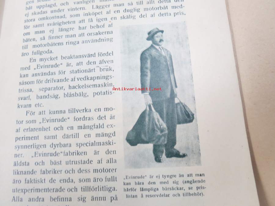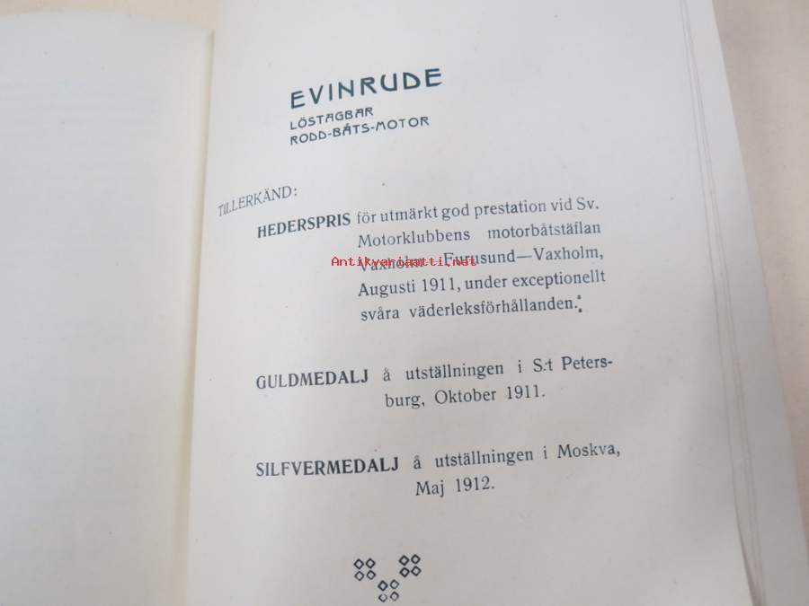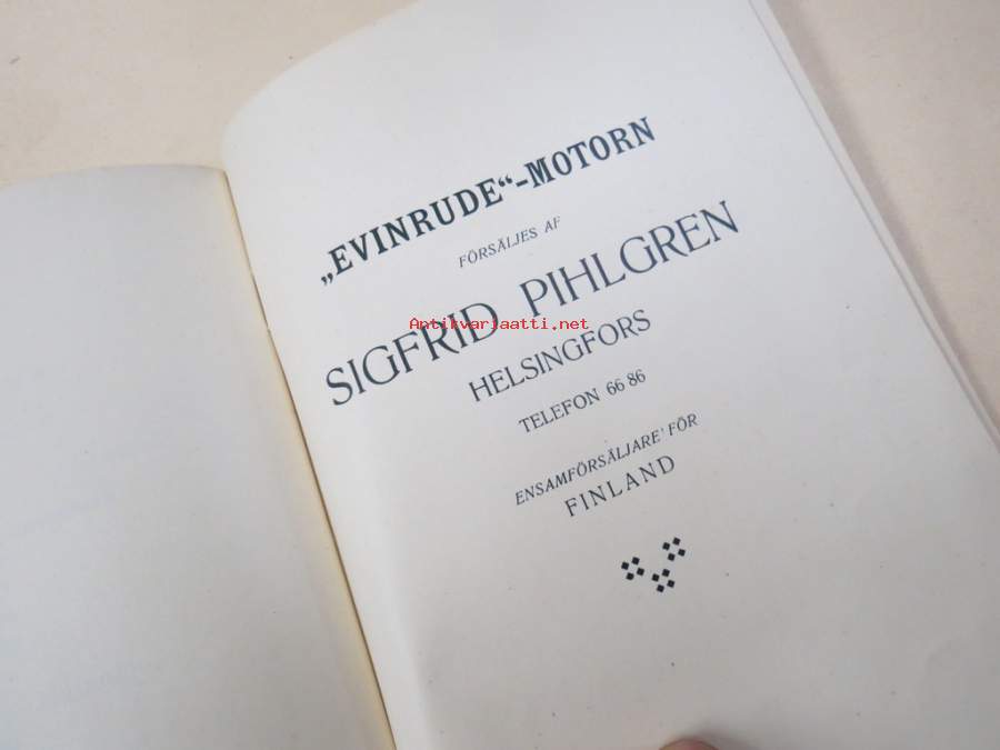 Evinrude - Sigfrid Pihlgren Helsingfors -perusteellinen Evinrude-perämoottorien esittelykirja vuodelta 1913, ruotsinkielinen