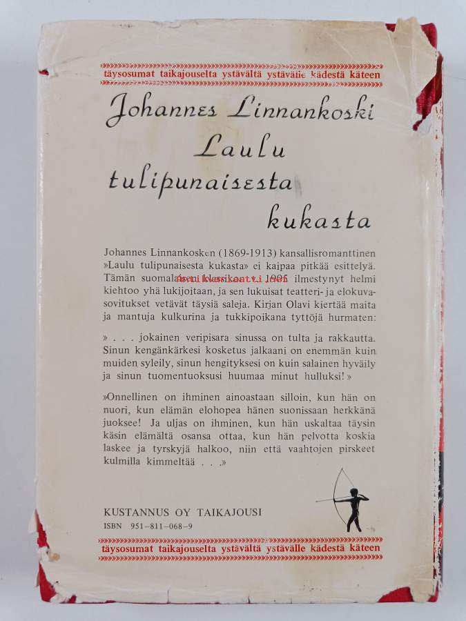 Hyvä. Tarkempi kuntoluokka: K3+ ; Hieman kolhua reunoilla ja kulmissa, selkämyksessä hieman vinoutta. Kansipaperin kunto: repeämiä/kulumaa