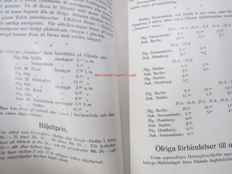 Till Berlin - Expresslinjen Helsingfors - Stettin med "Ariadne" Nordens modernaste passagerareångare -matkaesite