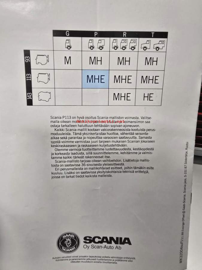 Scania P93 paloauto -myyntiesite (1988) / sales brochure