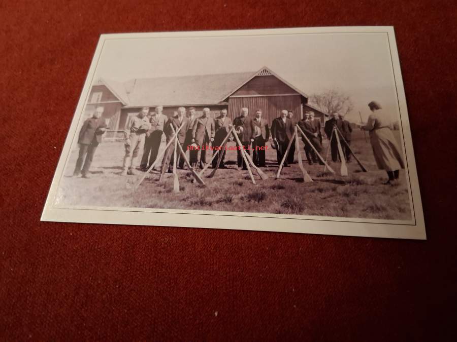 Postikortiksi teetetty valokuvasta.Teettäjä Vapaussodan ja itsenäisyyden perinne yhdistys. Jurvan Närvijoen Suojeluskunta 20v.muistoissa 1938.