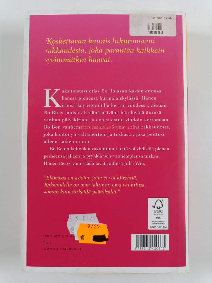 Muu(t) tekijä(t): Anuirmeli Sallamo-LaviMerkinnät: omistajamerkintäSarja: Burma-sarja 3Alkuteos: Das Gedächtnis des Herzens