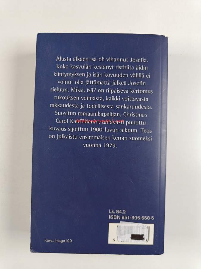 Hyvä. Hieman käytön jälkeä kansissa, takana vanha hintalappu, selkämyksessä hieman vinoutta, selkämyksessä lukutaittumaa