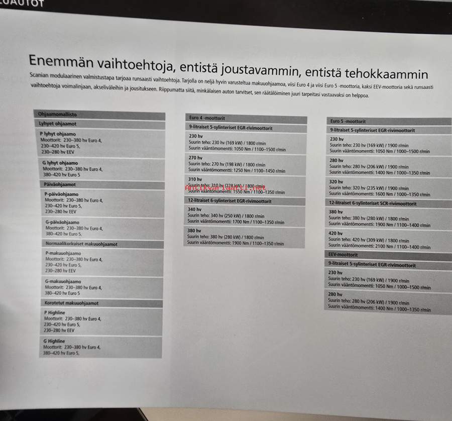 Scania engines bus programme (bussit) -myyntiesite / sales program