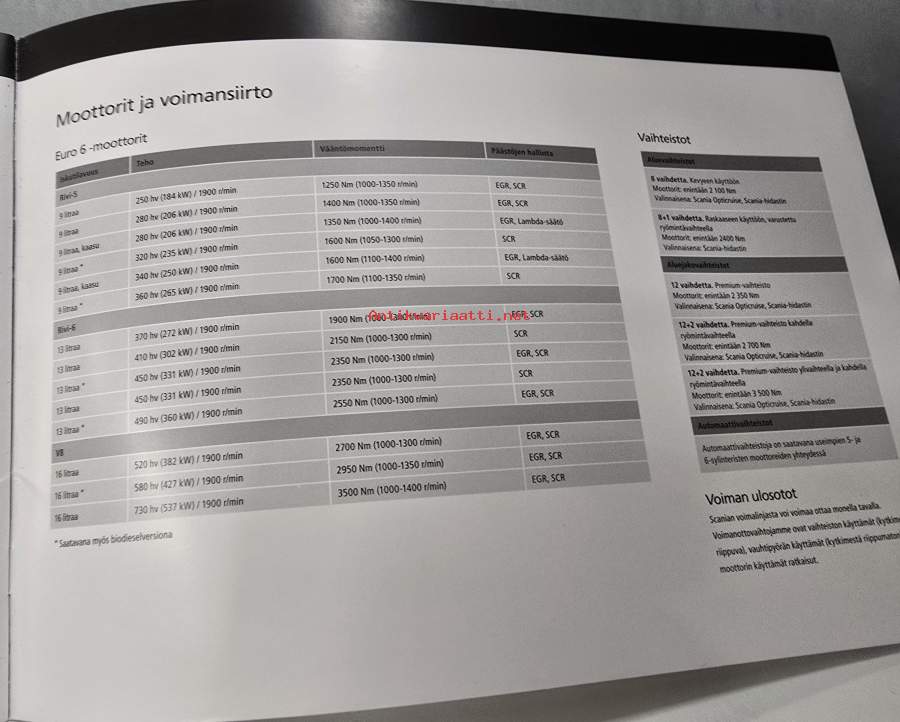 Scania engines bus programme (bussit) -myyntiesite / sales program