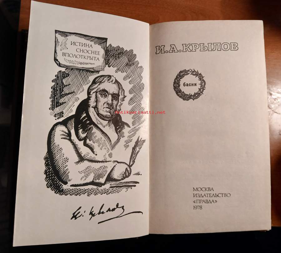 AI-yhteenvetoKyseessä on venäläisen kirjailijan Ivan Krylovin (I.A. Krylov) satukirja. Kirjailija: Ivan Andrejevitš Krylov (1769–1844), tunnettu venäläinen satujen kirjoittaja. Sisältö: Kirja sisältää Krylovin kuuluisia satuja, kuten "Vaqu ja kettu" ja "Sudenkorento ja muurahainen". Moraali: Sadut tunnetaan opetuksistaan ja ihmisluonteen paheiden, kuten typeryyden ja imartelun, käsittelystä. Tuotanto: Krylov kirjoitti yhteensä 236 satua, jotka on julkaistu yhdeksässä kokoelmassa.