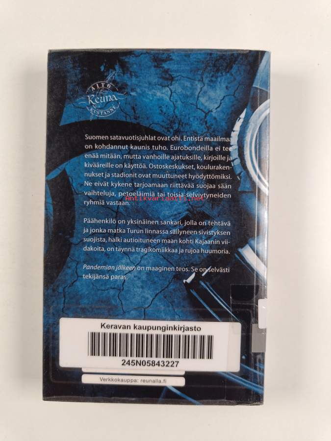 Tyydyttävä. Hieman kulumaa, selkämyksessä hieman vinoutta, kontaktimuovipäällystys, kirjaston poistokirja