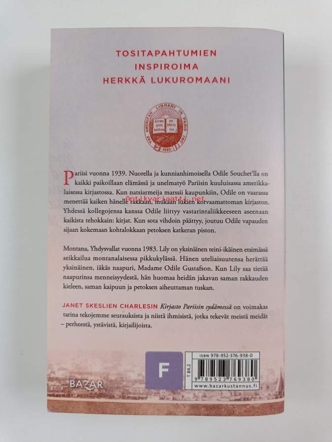 Muu(t) tekijä(t): Katariina KallioAlkuteos: The Paris libraryAsiasanat: sota-aika, ystävyys, toinen maailmansota, miehitys, kirjastot, vastarintaliikkeet, kirjastonhoitajat, teini-ikäiset, menneisyys, salaisuudet, naapurit, aikatasot