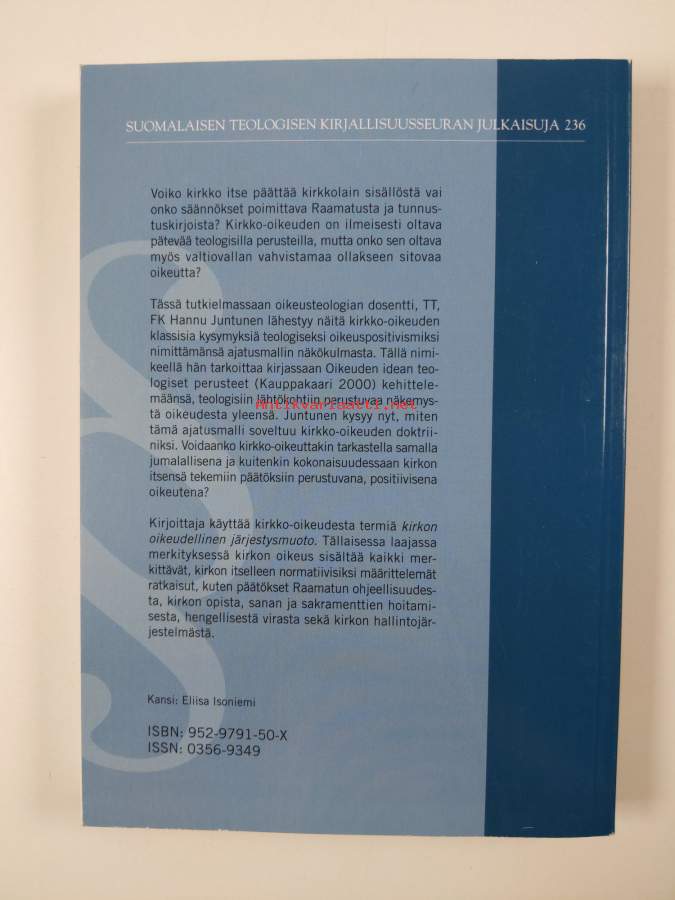 Sarja: Suomalaisen teologisen kirjallisuusseuran julkaisuja 236Asiasanat: oikeus, kirkko-oikeus, oikeusfilosofia, oikeuspositivismi