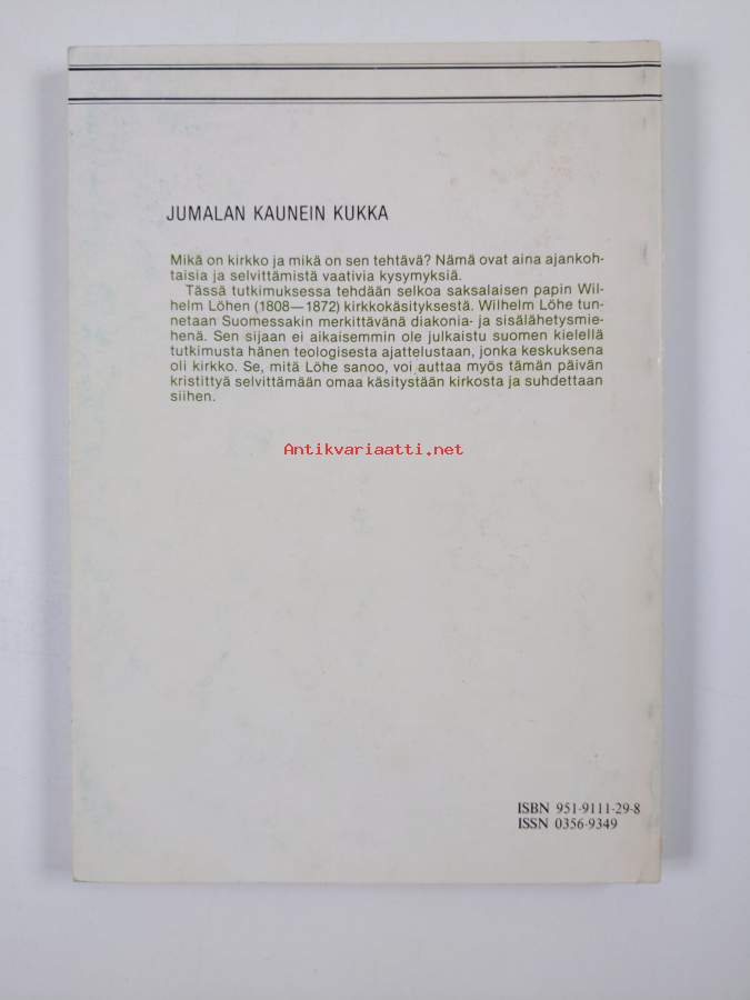 Jumalan kaunein kukka : Wilhelm Löhen kirkkokäsitys = Die schönste Blume Gottes : Wilhelm Löhes Auffassung von der Kirche