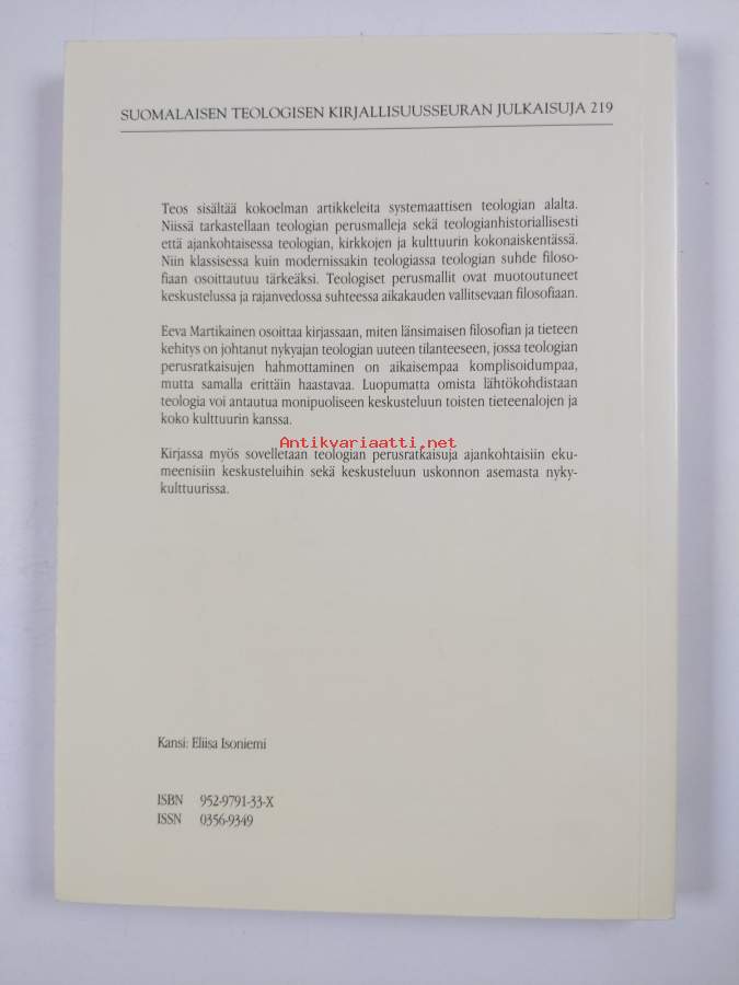 Sarja: Suomalaisen teologisen kirjallisuusseuran julkaisuja 219Asiasanat: kolminaisuusoppi, teologia, systemaattinen teologia