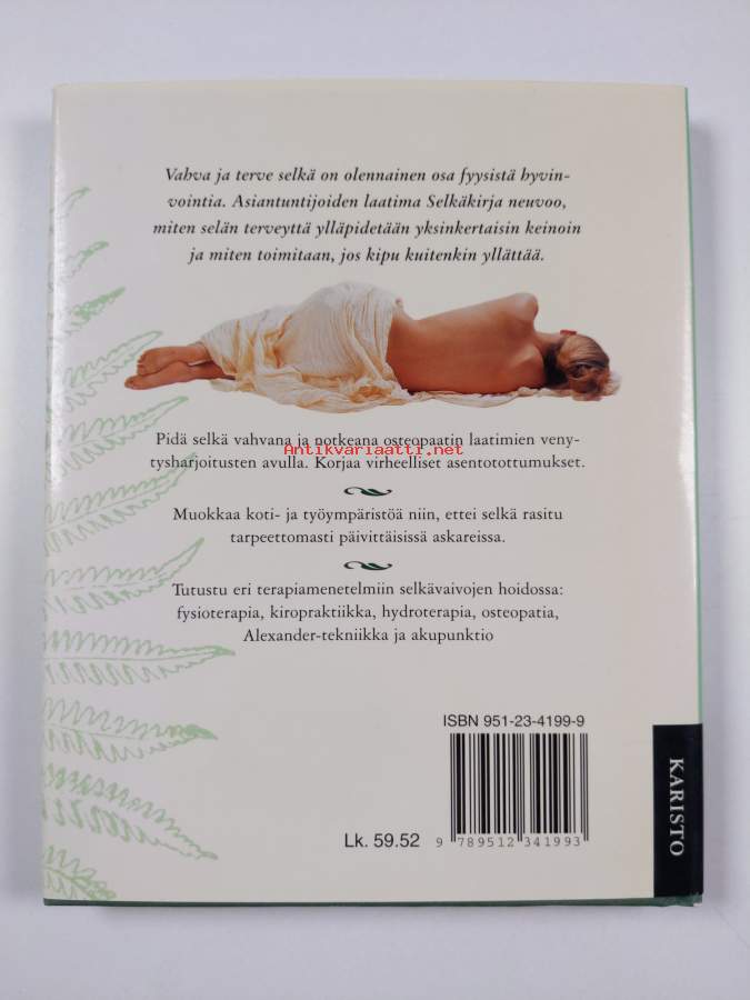 Muu(t) tekijä(t): Elina Kyrö, Colin Bowling ym.Alkuteos: The back bookAsiasanat: liikunta, kuntoliikunta, ennaltaehkäisy, hoitomenetelmät, itsehoito, selkäsairaudet