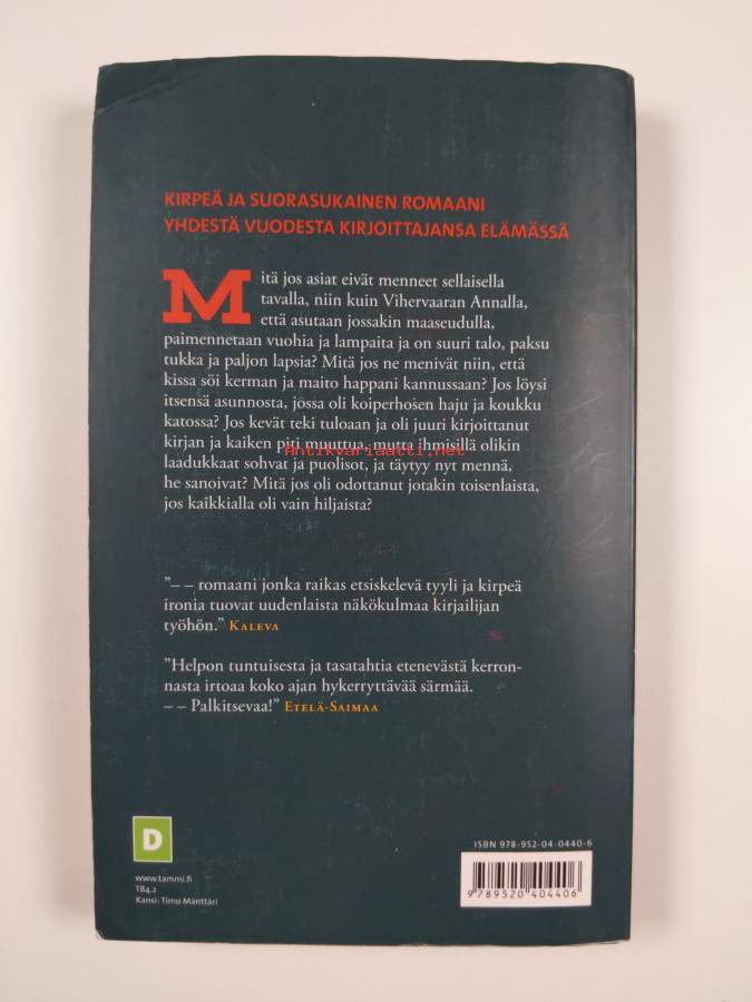Tyydyttävä. Hieman kulumaa, selkämyksessä aavistus vinoutta. läikkää/aaltoilua