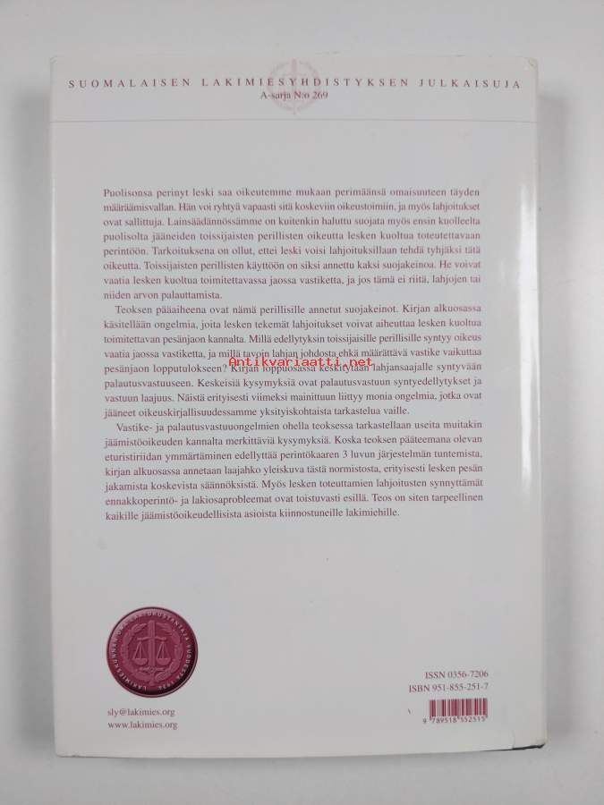 Sarja: Suomalaisen lakimiesyhdistyksen julkaisuja A-sarja n:o 269